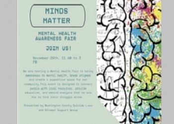 Mark your calendars November 29th at the Washington Park Mall 11am-3pm in Space 332 as The Washington County Suicide Loss & Attempt Support Group presents a free Minds Matter Mental Health Fair.