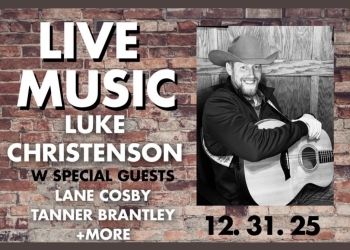 Live music will take center stage throughout the evening, featuring performances by Luke Christenson, Lane Cosby, Tanner Brantley, and more. The lineup promises a high-energy mix of local and regional talent, creating a lively atmosphere as the countdown to midnight approaches.