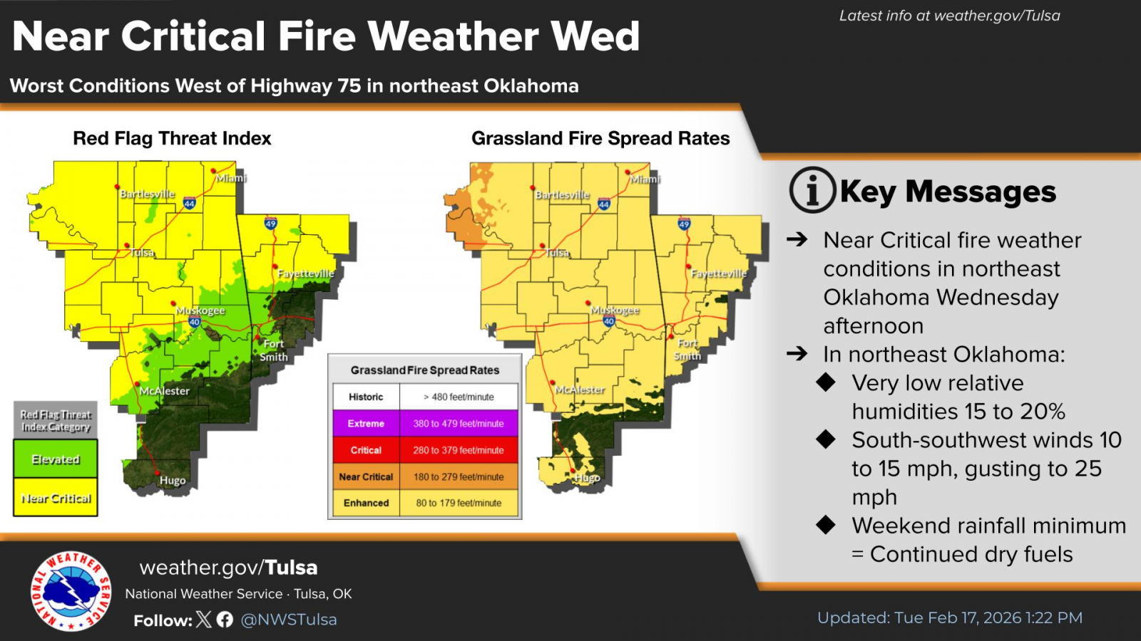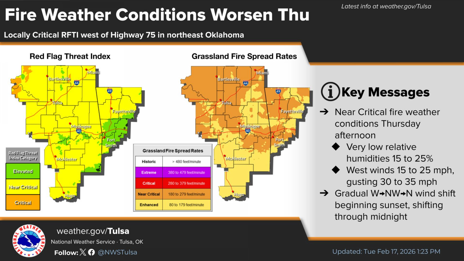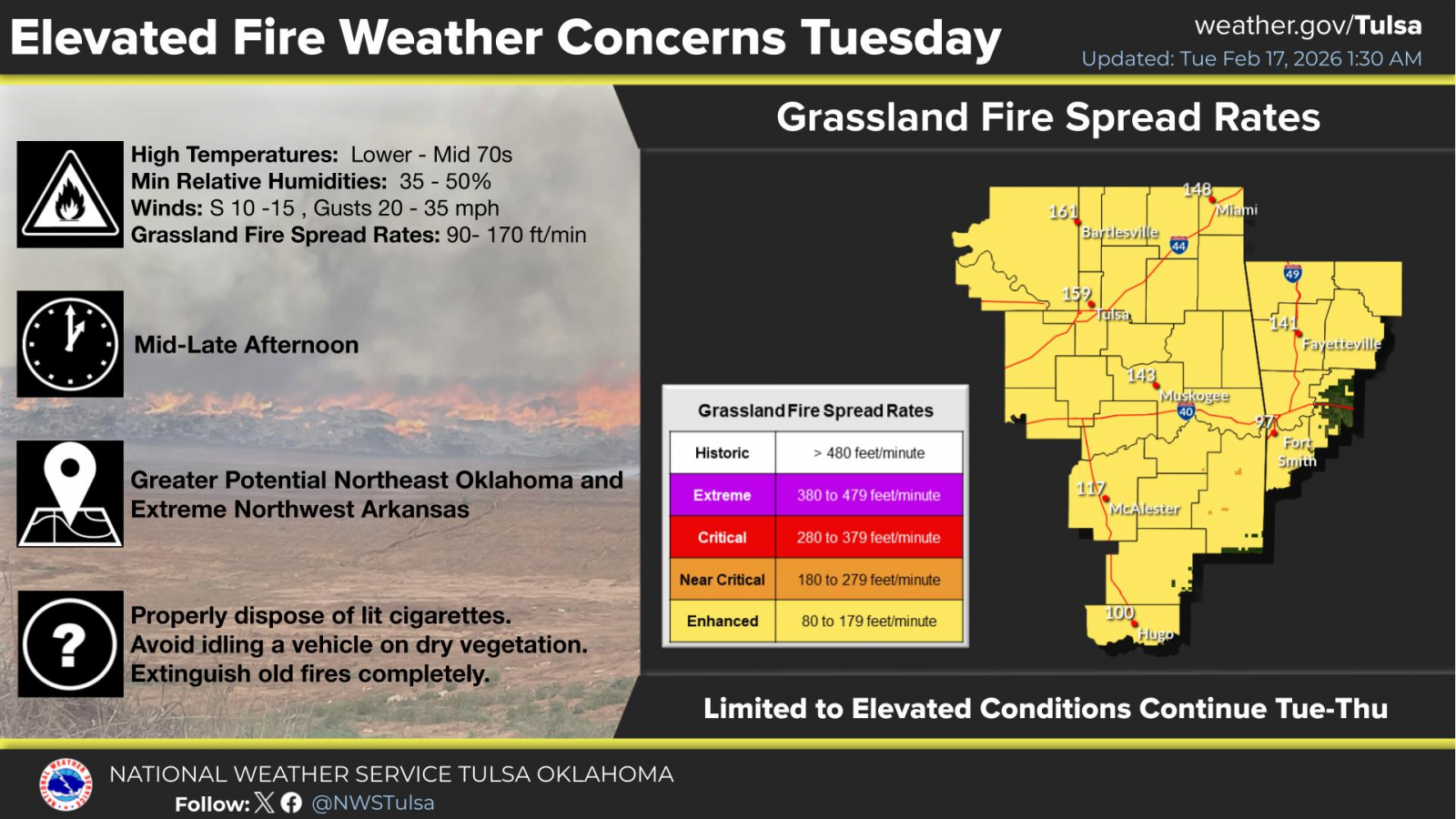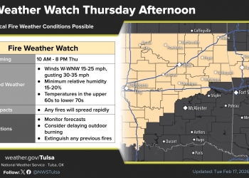 The National Weather Service in Tulsa has issued a fire weather watch for most of northeast Oklahoma.