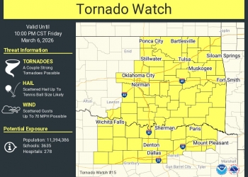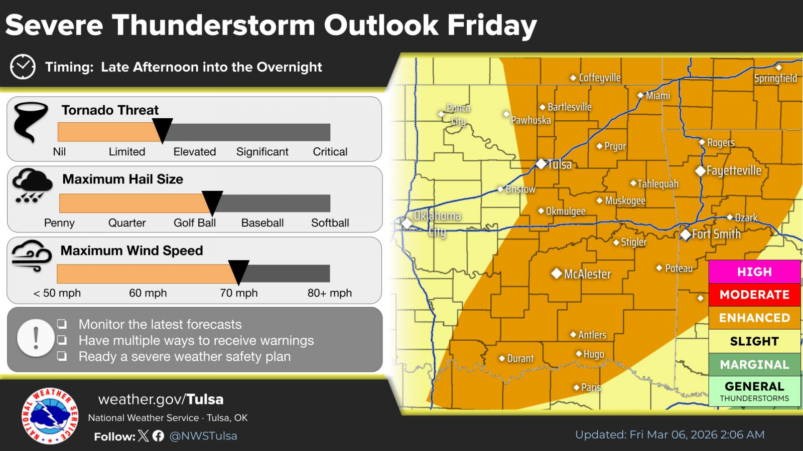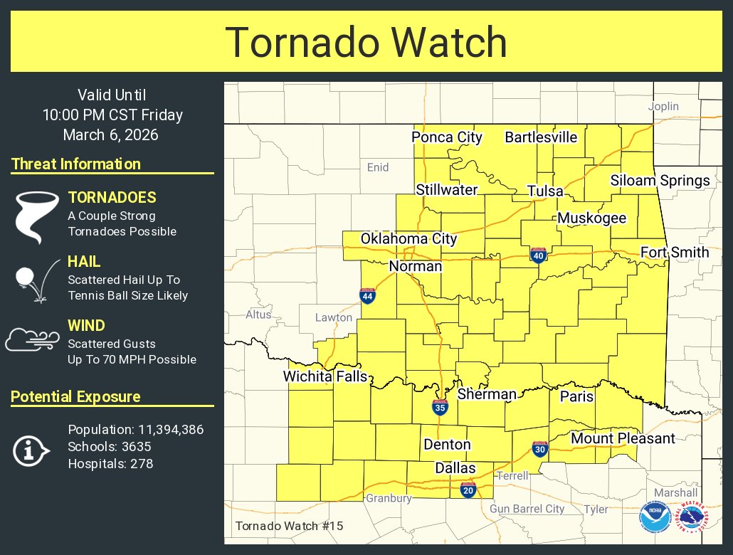 A tornado watch is in effect for our Oklahoma listening area until 10 p.m. Friday.