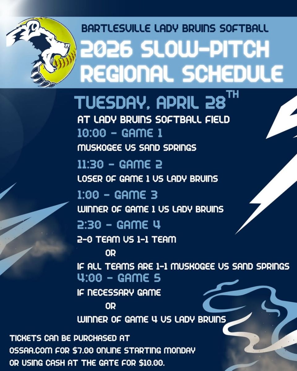 Bartlesville High slow pitch softball will try to qualify for another State Tournament, as the Lady Bruin’s Regional begins at home on Tuesday.