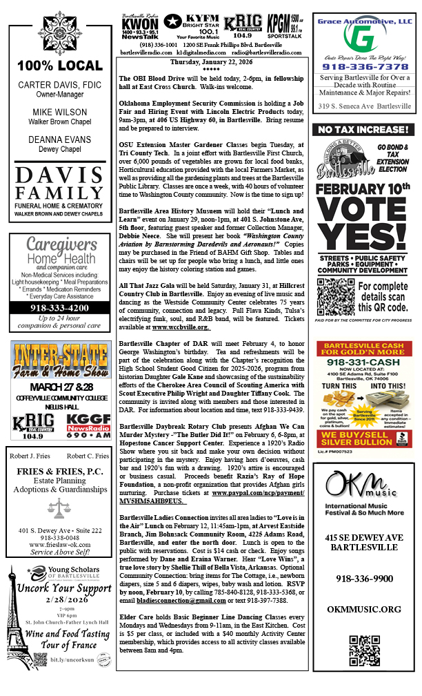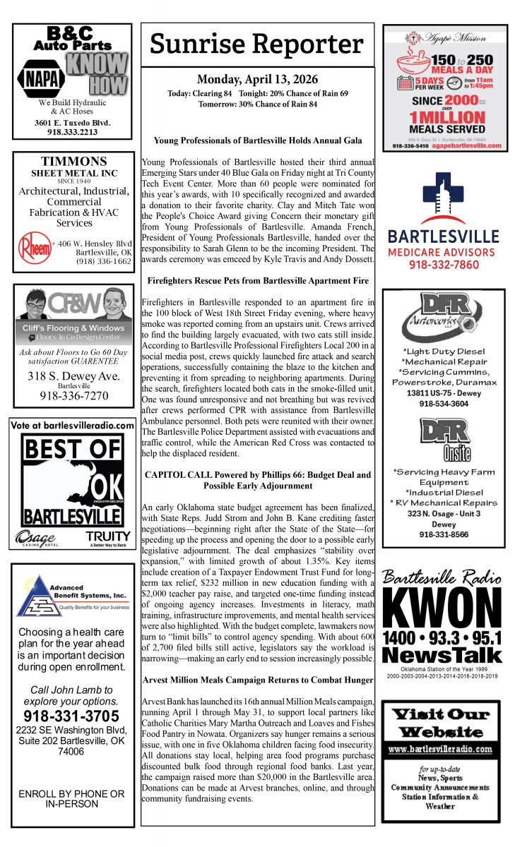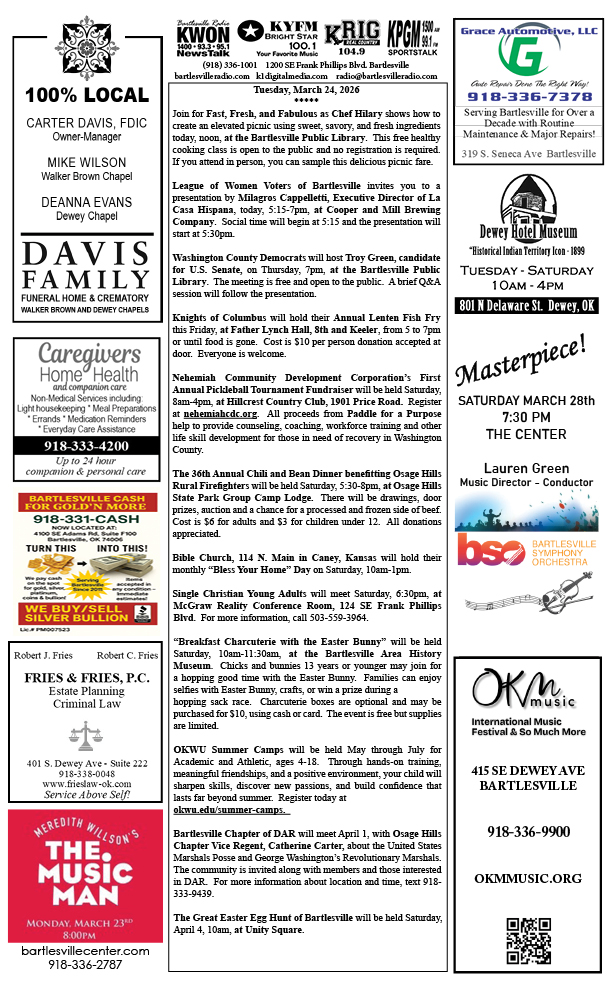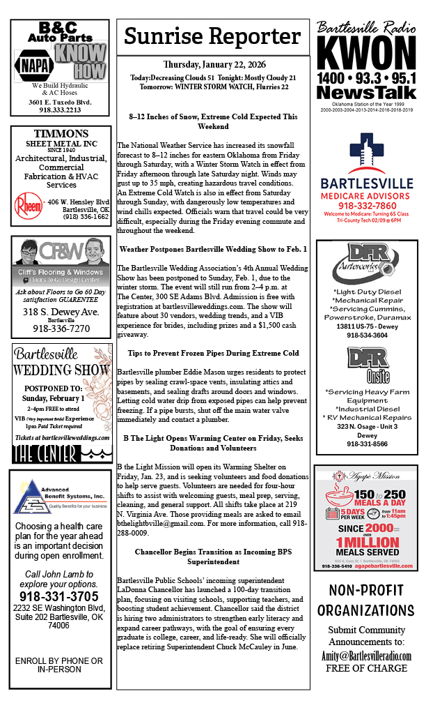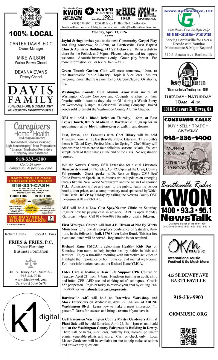 Bartlesville Radio: The area’s best source for news, weather and sports!